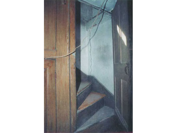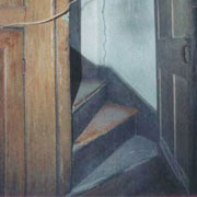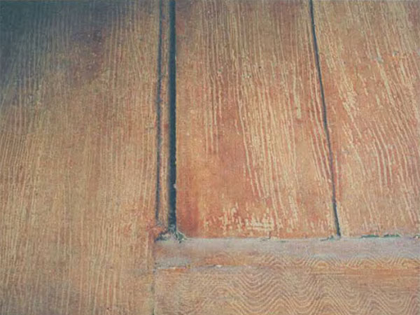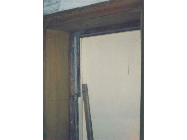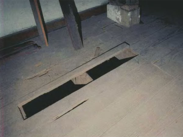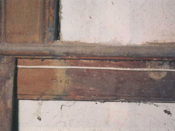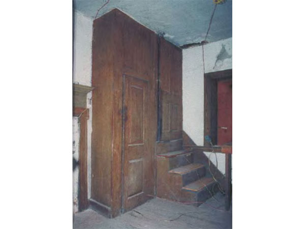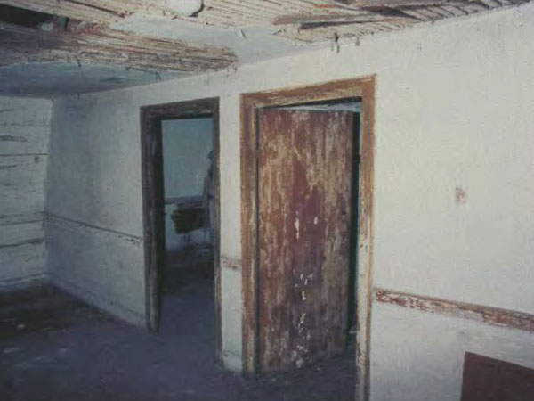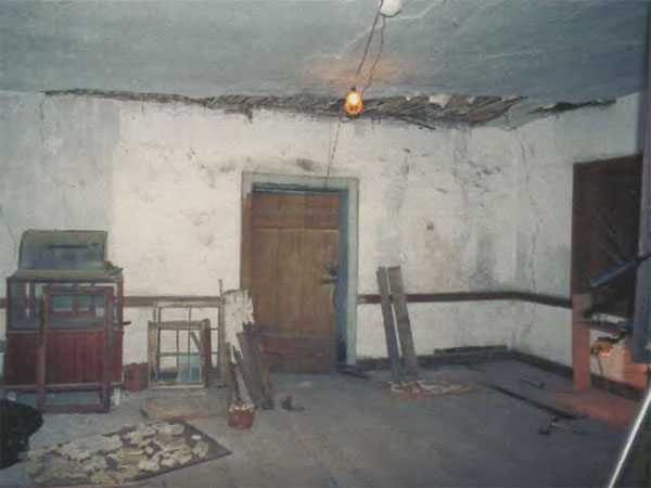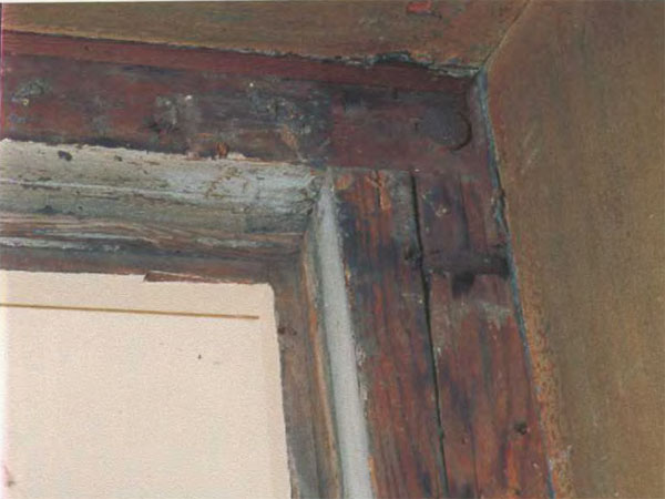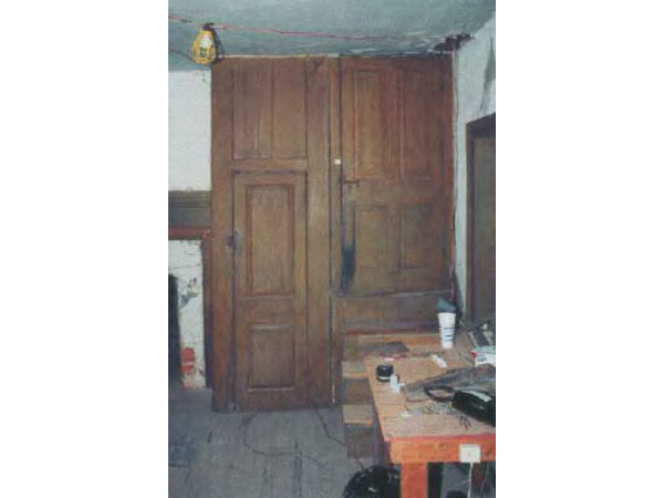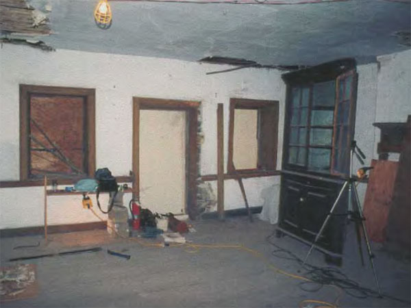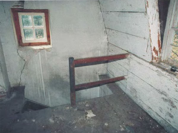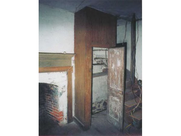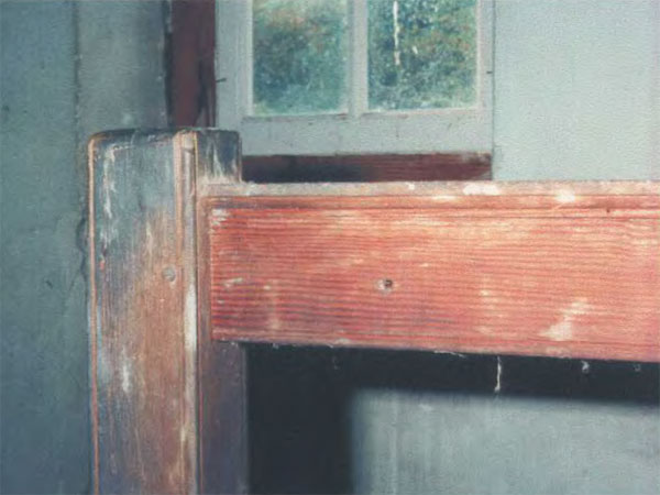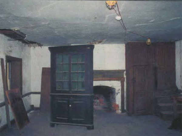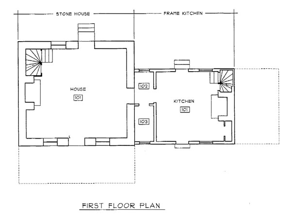 Opening with the main building's floor plan, the visual investigation of the site continues on the interior of the house and kitchen. Moving from first story to second story, the features and components of each room are documented, including a corner cupboard original to the house and pit sawn timbers.