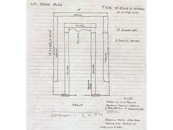 This slideshow covers the remaining area of the site, focusing our above ground archeological survey on both the standing and fallen outbuildings. We note each structure's architectural features and from these we start forming theories about the buildings' previous functions. Where a building no longer stands (like the store building,) we make note of how and where its parts have fallen and landed. Also included are photographs of the store building taken while it was still standing and a first-hand description of its interior from a local resident.