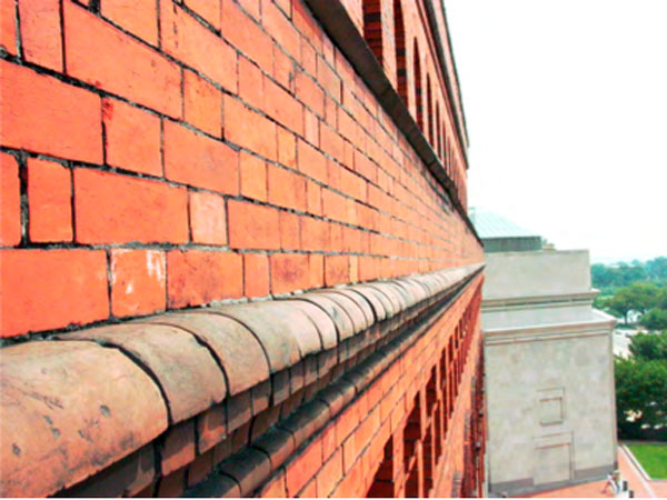 The GSA had called in a construction crew to deal with bricks that had been coming loose from the building, causing a potential "life-saftey" risk. Before this, the skyward-facing joints at the projecting bands of bricks and the parapets had gone 125 years without maintenance. Because it had been so long since the brickwork had been tended to, the government anticipated the need for a "100% repoint." At the time, the funds were not available for such a huge undertaking, which meant that repair of the building could be put off even longer.