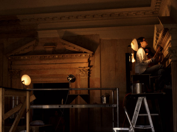 The Miles Brewton House in Charleston, SC is one of the finest Georgian townhouses in America. Except for some Federal, Neoclassical, and Greek Revival remodeling, the Miles Brewton House maintains most of its original over-the-top Georgian elements. A portion of the restoration project included repair of forty-five double-hung sash windows and one large 6 foot wide Neoclassical oval window located in the front pediment. We were unable to find local contractors with adequate preservation skills, so the client allowed us to train people from the community. We created an on-site window repair school in the carriage house, focused on training and introducing a core of dedicated locals to the unique needs of historic buildings. This school not only created a labor force that was lacking in Charleston, but it also freed up the conservation team so that we could focus our attention on the careful restoration of the delicate and intricate oval window.