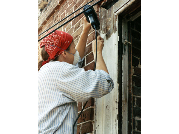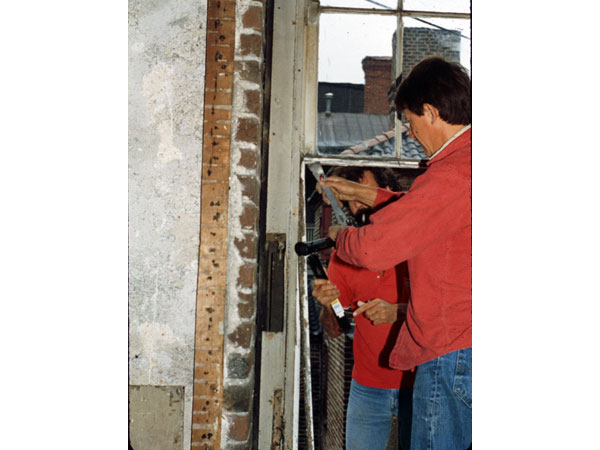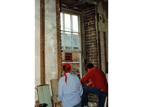 At this point, I had been restoring windows for nearly fifteen years and had developed many techniques. This is the first project where we actually tried to set up semi-mass production and train relatively unskilled workers. We had concluded that people willing, interested, and with good attitudes would usually be easier to train than people who already thought they knew how to do the work. We decided to set up a shop in the basement of the Miles Brewton House where we could train the workers, a practical operation because by starting the workers in the shop, we could train them on all kinds of basic skills they could use throughout the building. Some of them would go into paint removal from decorative elements while others would go into repair of damaged elements.