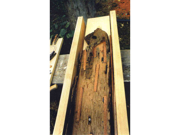 This slideshow focuses on the steps we took to strengthen a corner brace by using surface consolidation and creating a new custom-fit core for the weakened white oak timber.