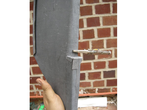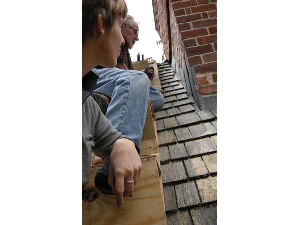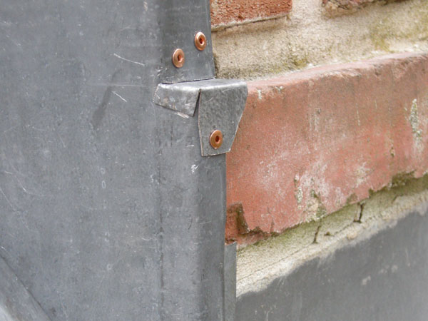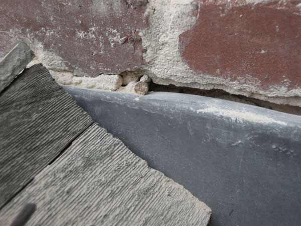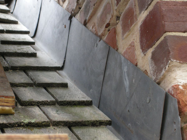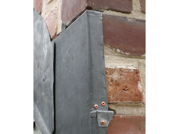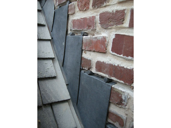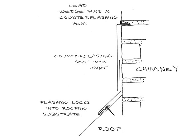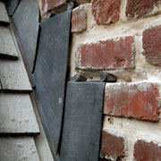 Benn Shehane repairs improperly installed counterflashing. Using only lead wedges and interlocking pans, he creates a secure barrier for the flashing to help keep out rainwater. Included are diagrams on how to create the graduated counterflashing pans used on this project. Features the design of a custom pan made to fit an unusual feature of the masonry.