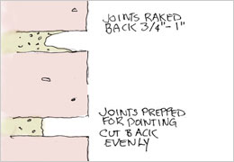 1. Scrape the background mortar remaining in the joint back to a minimum of one inch, squared to the back of the joint. |