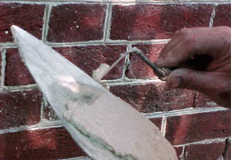 2. This mortar and the surrounding masonry must be hydrated adequately, but not excessively - wet brick faces will lead to a smeared mess. It is important to spray the joints about an hour in advance, and in hot weather again 10-15 minutes before pointing begins, to ensure that the internal masonry is damp, but the brick faces are fairly dry. This should allow easy cleanup with a stiff brush once any stray mortar on the faces has dried. |
